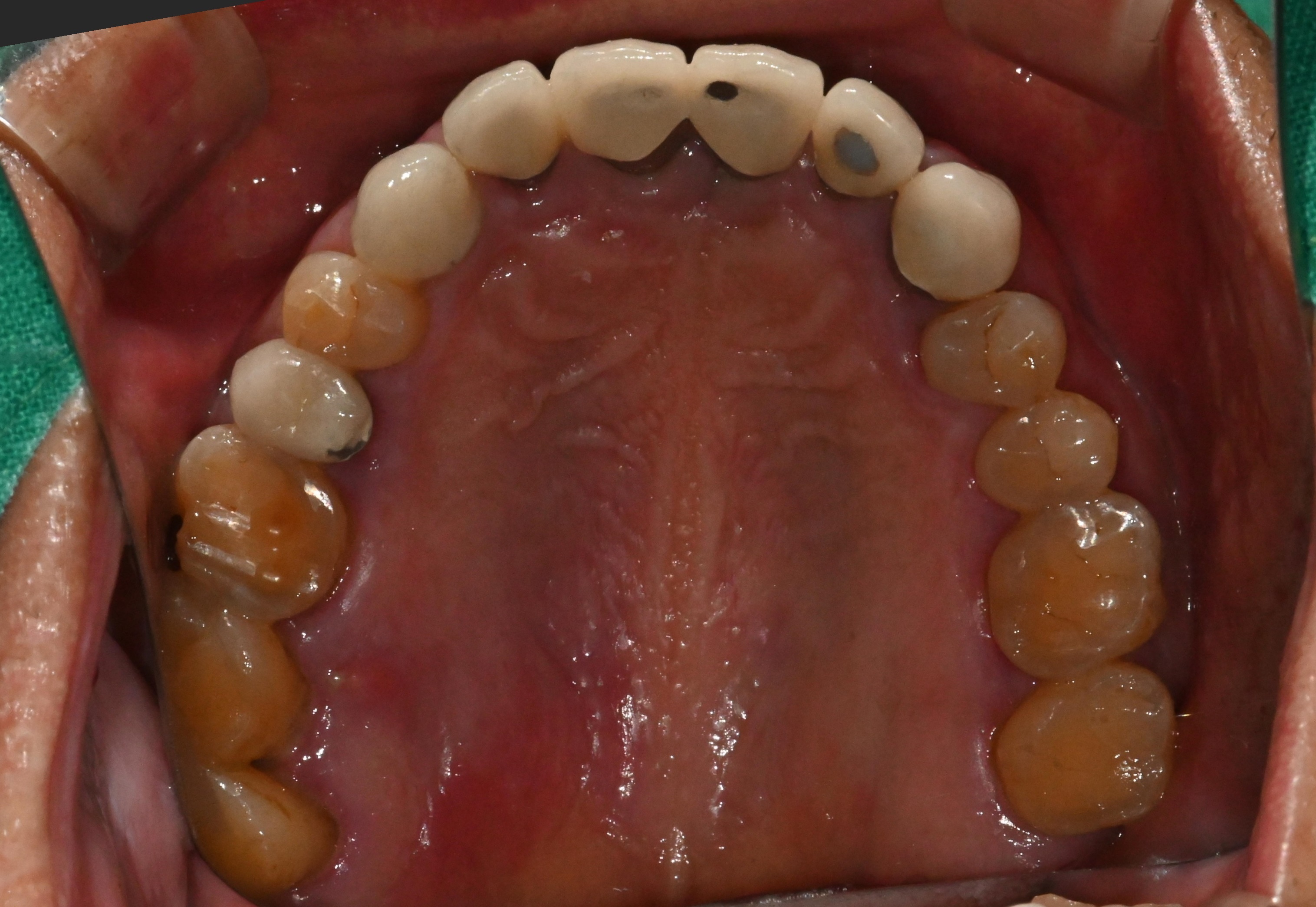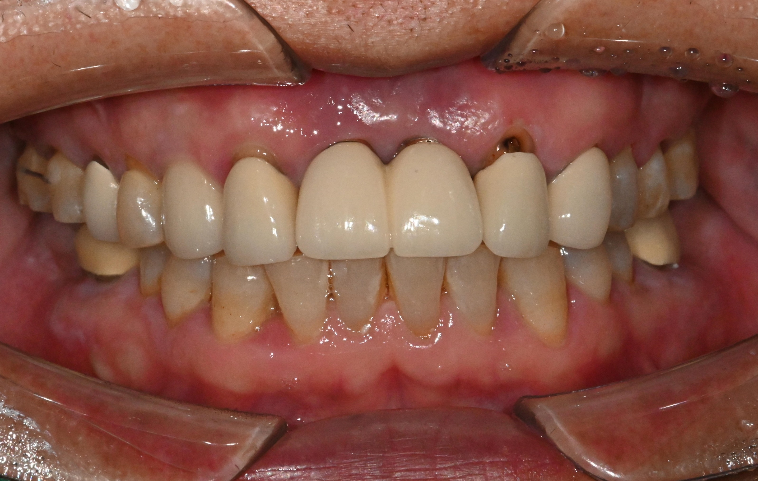 이 환자분은 5년 전에 일반적인 임플란트로 앞니 두개를 식립하셨습니다. 최근 보철물에서 냄새가 나고 흔들린다며 내원하셨죠.